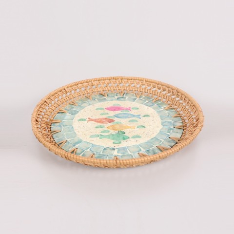 Decorazione per la casa vassoio in Rattan che combina madreperla decorativo in Rattan vassoio da portata Display piatto di frutta da tè fatto in Vietnam